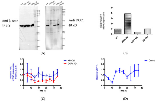 3.6. DOPr Expression Is Essential for Maintaining Rhythmicity in PER2 Expression