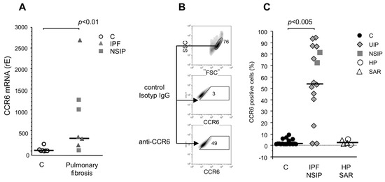 3.2. CCR6 Expression in Human Fibrotic Lung Tissue