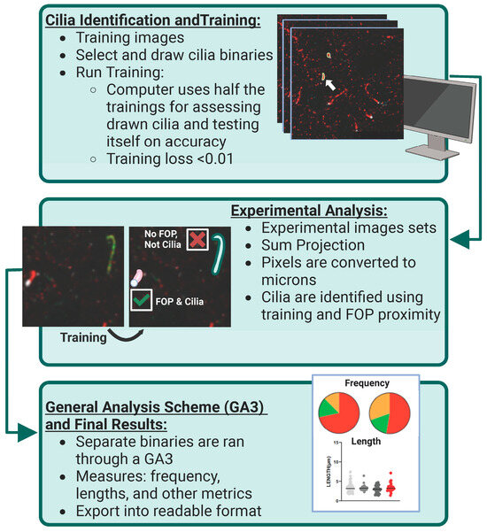 - Bansal, R.; Engle, S.E.; Kamba, T.K.; Brewer, K.M.; Lewis, W.R.; Berbari, N.F. Artificial Intelligence Approaches to Assessing Primary Cilia. J. Vis. Exp. 2021, 171, e62521. [Google Scholar] [CrossRef]