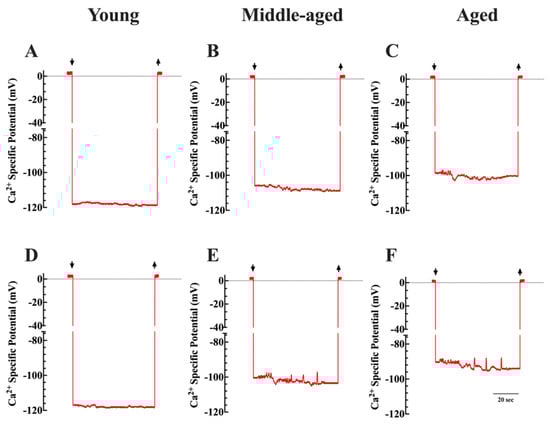 - Uryash, A.; Flores, V.; Adams, J.A.; Allen, P.D.; Lopez, J.R. Memory and Learning Deficits Are Associated with Ca2+ Dyshomeostasis in Normal Aging. Front. Aging Neurosci. 2020, 12, 224. [Google Scholar] [CrossRef] [PubMed]