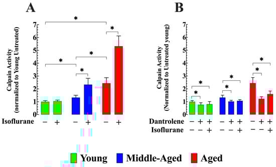 3.5. Dantrolene Diminish Calpain Activity and Prevents Isoflurane-Induced Elevation in Older Neurons