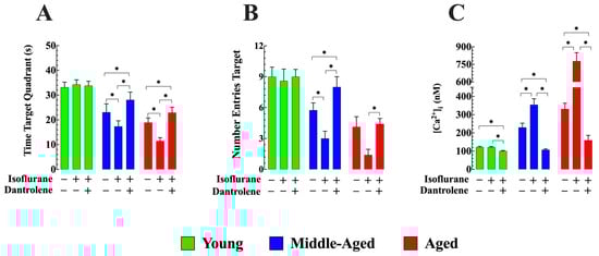- The elevated [Ca2+]i observed in middle-aged and aged animals was associated with age-related cognitive deficits evaluated using MWM. Isoflurane further aggravated cognitive deficits in aged mice. As seen with the increase of [Ca2+]i dantrolene pretreatment prevented or alleviated the isoflurane-induced performance decline. The ability of dantrolene to prevent isoflurane-induced performance decline was associated with reduced neuronal [Ca2+]i.