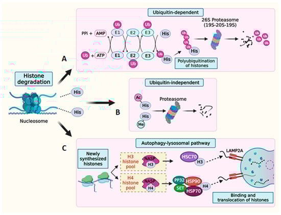 - Shmueli, M.D.; Sheban, D.; Eisenberg-Lerner, A.; Merbl, Y. Histone degradation by the proteasome regulates chromatin and cellular plasticity. FEBS J. 2022, 289, 3304–3316. [Google Scholar] [CrossRef]