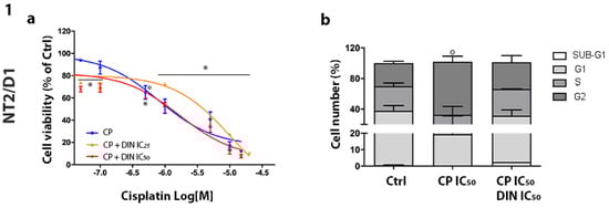 | NT2/D1 | 39,426 (35,902–43,297) | 28,086 (25,649–30,754) p < 0.01 vs vehicle | 23,597 (21,741–25,612) p < 0.01 vs vehicle | 22,192 (20,238–24,334) p < 0.01 vs vehicle p < 0.01 vs cisplatin |