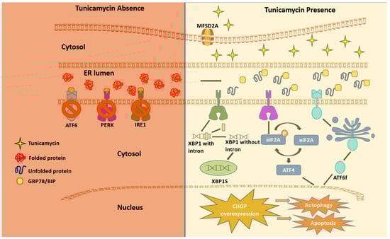 - Wang, Y.; Zhang, L.; He, Z.; Deng, J.; Zhang, Z.; Liu, L.; Ye, W.; Liu, S. Tunicamycin induces ER stress and inhibits tumorigenesis of head and neck cancer cells by inhibiting N-glycosylation. Am. J. Transl. Res. 2020, 12, 541–550. [Google Scholar]