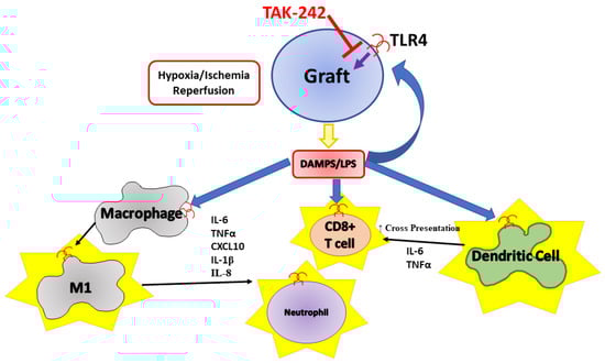 - Wienhöfer, L.; Marker, M.; Antoni, A.-C.; Sutter, K.; Sander, A.; Dudda, M.; Flohé, S.B. TLR4 Transactivates CD8+ T Lymphocytes upon Acute Sterile Tissue Injury. ImmunoHorizons 2021, 5, 298–306. [Google Scholar] [CrossRef]