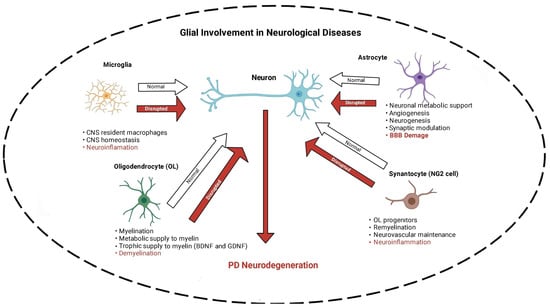 - Chen, K.; Wang, H.; Ilyas, I.; Mahmood, A.; Hou, L. Microglia and Astrocytes Dysfunction and Key Neuroinflammation-Based Biomarkers in Parkinson’s Disease. Brain Sci. 2023, 13, 634. [Google Scholar] [CrossRef] [PubMed]