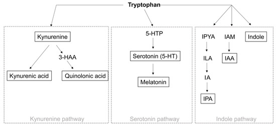 In addition to the kynurenine and serotonin pathways, tryptophan can be metabolized via the indole pathway into a variety of indoles, such as indole-3-acetic acid (IAA) and indole-3-pyruvic acid (IPA) (Figure 3) [129]. Notably, these indoles can also act as ligands for AhR and regulate inflammatory functions in a wide variety of cell types. For instance, AhR activation through indoles can regulate the differentiation and function of immune cells, such as Tregs, and drive both pro- and anti-inflammatory functions [152]. Therefore, indoles share similar immunomodulatory properties with metabolites of the kynurenine and serotonin pathways, strengthening the importance of bacterial metabolites in the regulation of inflammation.