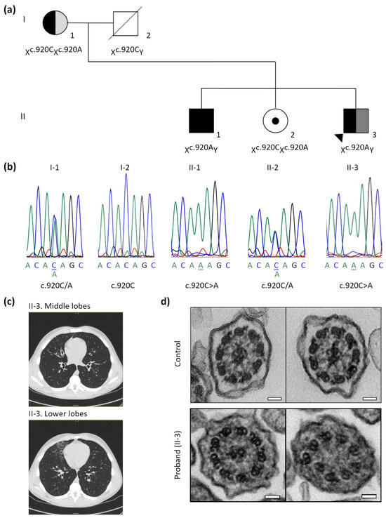 - Kuroda, A.; Namkoong, H.; Iwami, E.; Tsutsumi, A.; Nakajima, T.; Shinoda, H.; Katada, Y.; Iimura, J.; Suzuki, H.; Kosaki, K.; et al. X -Linked Inheritance of Primary Ciliary Dyskinesia and Retinitis Pigmentosa Due to RPGR Variant: A Case Report and Literature Review. Respirol. Case Rep. 2023, 11, e01240. [Google Scholar] [CrossRef] [PubMed]
