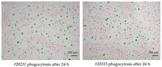 Morphological characteristics of the long-term cultured phagocytes were monitored by phase–contrast microscopy using a Nikon eclipse TS2 microscope and a 20×–40× phase contrast objective (Nikon, Tokyo, Japan, www.nikon.com, accessed on 1 October 2023). Images were taken using the NIS Elements Vs. 4.6 software (Nikon, Tokyo, Japan, www.nikon.com).