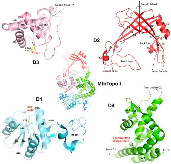 - Tan, K.; Cao, N.; Cheng, B.; Joachimiak, A.; Tse-Dinh, Y.C. Insights from the Structure of Mycobacterium tuberculosis Topoisomerase I with a Novel Protein Fold. J. Mol. Biol. 2016, 428, 182–193. [Google Scholar] [CrossRef]