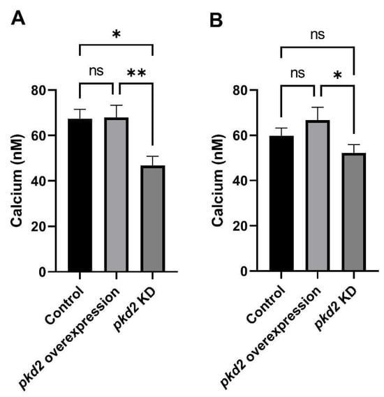 3.3.2. Resting Ca2+ Levels Are Altered by Changing pkd2 Expression
