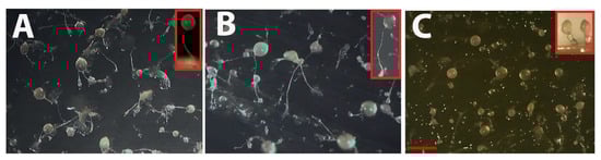 - Cotter, D.A.; Raper, K.B. Spore germination in Dictyostelium discoideum. Proc. Natl. Acad. Sci. USA 1966, 56, 880–887. [Google Scholar] [CrossRef] [PubMed]