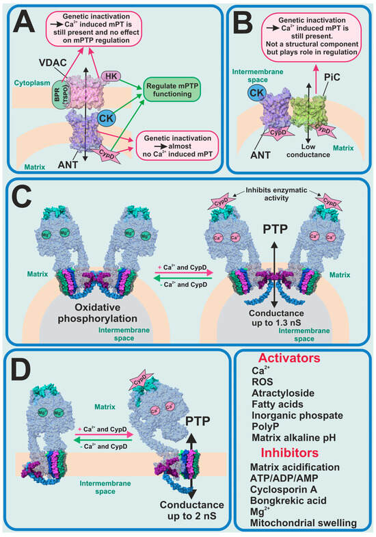 - Bonora, M.; Giorgi, C.; Pinton, P. Molecular mechanisms and consequences of mitochondrial permeability transition. Nat. Rev. Mol. Cell Biol. 2022, 23, 266–285. [Google Scholar] [CrossRef]