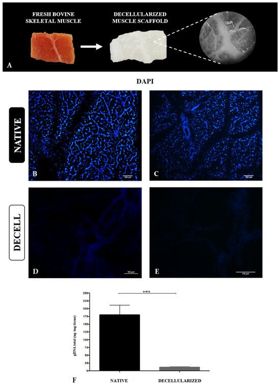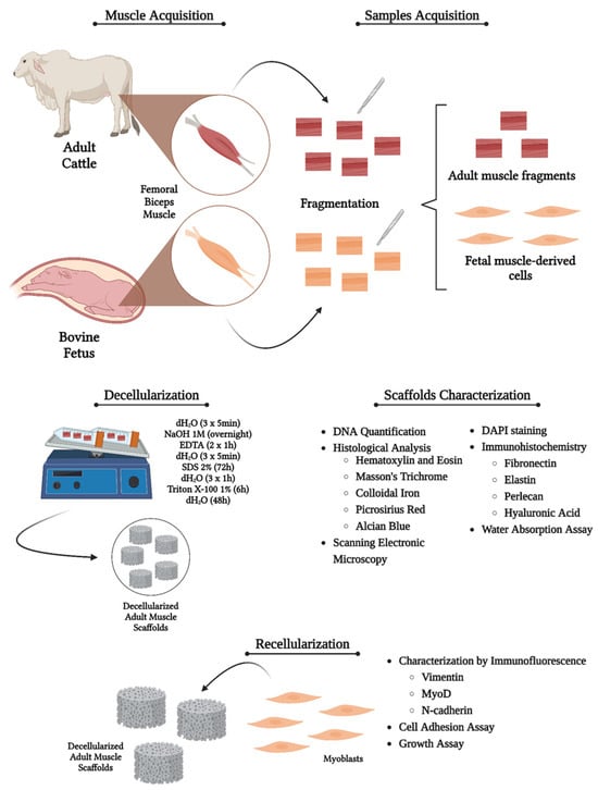 - Philips, C.; Terrie, L.; Thorrez, L. Decellularized skeletal muscle: A versatile biomaterial in tissue engineering and regenerative medicine. Biomaterials 2022, 283, 121436. [Google Scholar] [CrossRef] [PubMed]