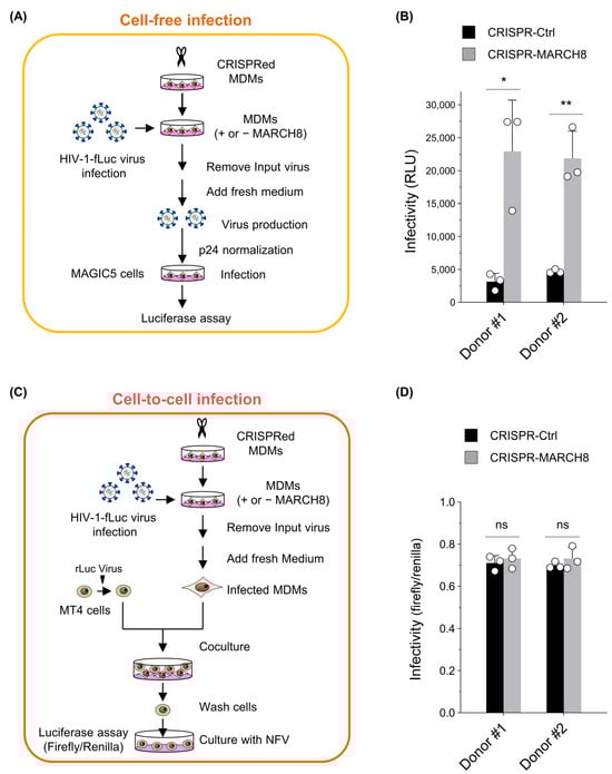 - Zhang, Y.; Tada, T.; Ozono, S.; Yao, W.; Tanaka, M.; Yamaoka, S.; Kishigami, S.; Fujita, H.; Tokunaga, K. Membrane-associated RING-CH (MARCH) 1 and 2 are MARCH family members that inhibit HIV-1 infection. J. Biol. Chem. 2019, 294, 3397–3405. [Google Scholar] [CrossRef] [PubMed]