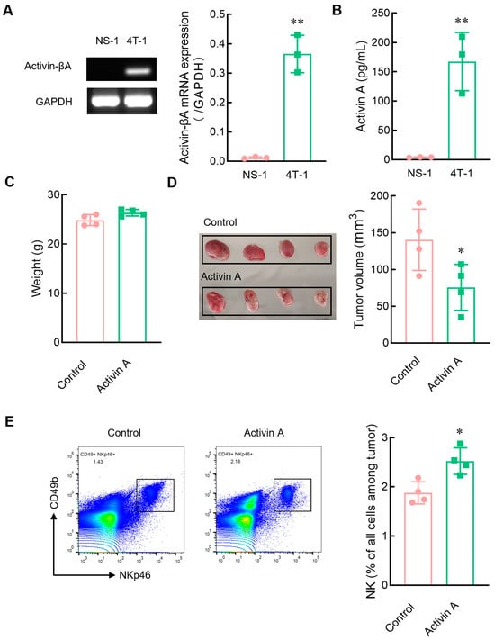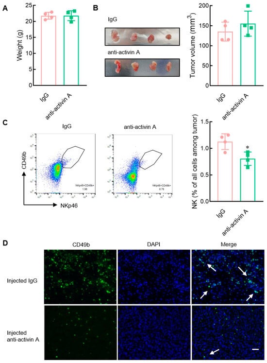 3.8. Blocking the Endogenous Activin A Reduces the Infiltration of NK Cells into 4T-1 Cell Solid Tumors