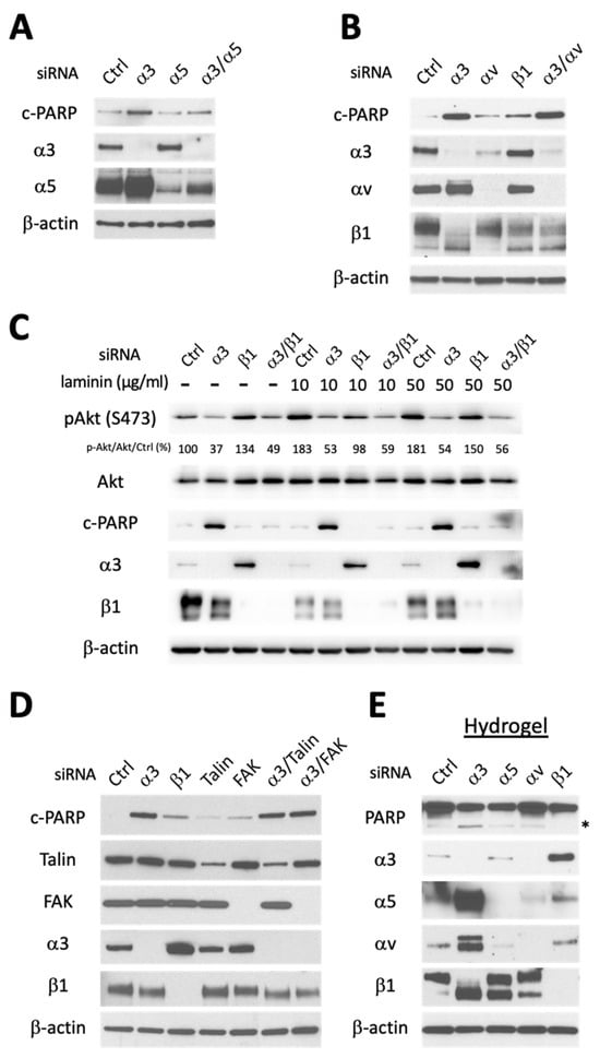 3.2. Apoptosis Induced by Integrin α3 Silencing Is Not Dependent on Activation of Other Integrins and Is Independent of Integrin-Mediated Survival Signaling
