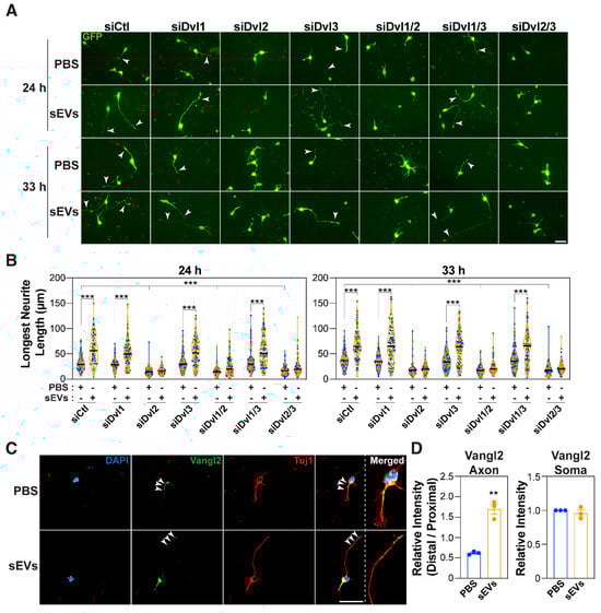 3.1. sEVs Promote Acquisition of a Polarized Neuronal Morphology by Enhancing Axon Outgrowth
