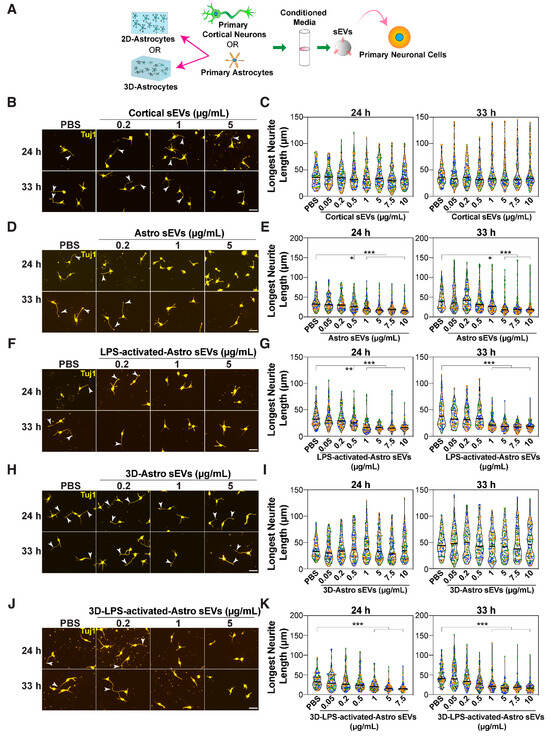 - Chun, C.; Smith, A.S.T.; Kim, H.; Kamenz, D.S.; Lee, J.H.; Lee, J.B.; Mack, D.L.; Bothwell, M.; Clelland, C.D.; Kim, D.H. Astrocyte-derived extracellular vesicles enhance the survival and electrophysiological function of human cortical neurons in vitro. Biomaterials 2021, 271, 120700. [Google Scholar] [CrossRef]