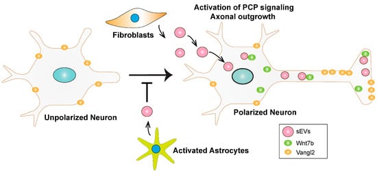 Neurons are the fundamental unit of the central nervous system (CNS) and exhibit a polarized morphology comprised of a single long axon and one or multiple dendrites. Sensory signals are received by dendrites and propagated down the length of the axon to neighboring neurons [,,,]. Thus, proper neuronal morphology is critical for synaptic transmission and cognitive functions of the brain. To acquire a polarized morphology, one neurite outgrows the other minor neurites and forms an axon, a process referred to as neuronal polarization [,,,]. Axons differ in their growth potential such that during development axons grow rapidly, but in the adult CNS, axons have lost the ability to grow []. Hence, the study of the mechanisms of axon outgrowth during development can provide insights into processes that need to be reactivated during axon regeneration in adults. Extracellular factors including Wnts, which are known to associate with extracellular vesicles (EVs), have been reported to modulate neurite outgrowth and neuronal morphology [,,,].