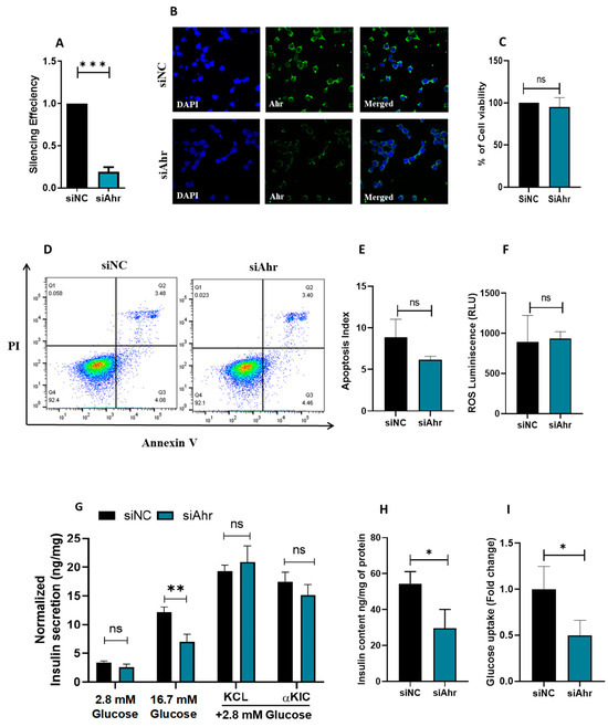 3.2. siRNA Silencing of Ahr in INS 1 Impairs Insulin Secretion and Glucose Uptake