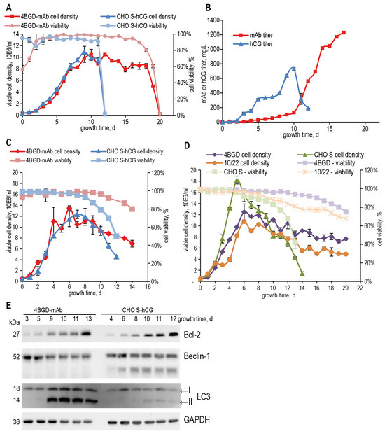 - Lee, J.S.; Ha, T.K.; Park, J.H.; Lee, G.M. Anti-cell death engineering of CHO cells: Co-overexpression of Bcl-2 for apoptosis inhibition, Beclin-1 for autophagy induction. Biotechnol. Bioeng. 2013, 110, 2195–2207. [Google Scholar] [CrossRef]