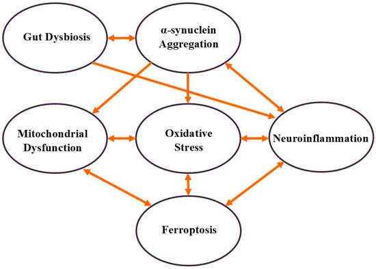 | Gut Dysbiosis | Linked to neuroinflammation and alpha-synuclein misfolding; promotes PD progression. | Pro-inflammatory cytokines; toll-like receptor dysregulation; disrupted gut–brain communication. | [154,155,157] |