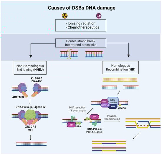 - Scully, R.; Panday, A.; Elango, R.; Willis, N.A. DNA Double-Strand Break Repair-Pathway Choice in Somatic Mammalian Cells. Nat. Rev. Mol. Cell Biol. 2019, 20, 698–714. [Google Scholar] [CrossRef] [PubMed]