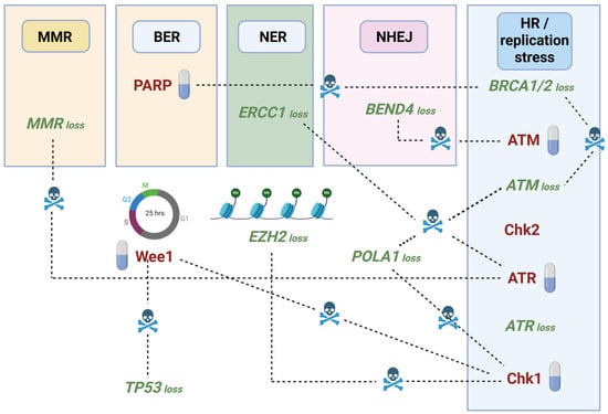 - Hopkins, J.L.; Lan, L.; Zou, L. DNA Repair Defects in Cancer and Therapeutic Opportunities. Genes Dev. 2022, 36, 278. [Google Scholar] [CrossRef]