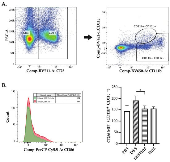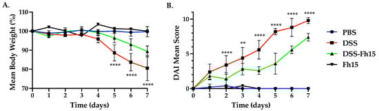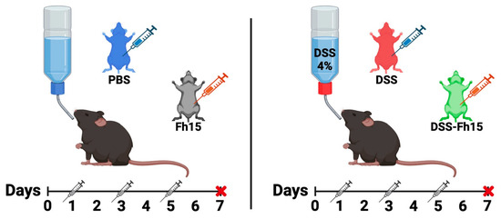 2.3. Dextran Sulfate Sodium (DSS) Colitis Induction and Fh15 Treatment