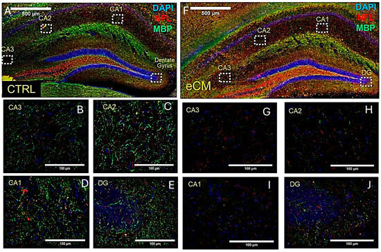 3.2. Increased NFL and Decreased MBP Immunostaining in the Hippocampus in eCM