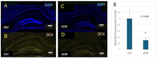 3.3. Decrease in Immature Neurons and Increased Neuroprogenitors in the Hippocampus During eCM