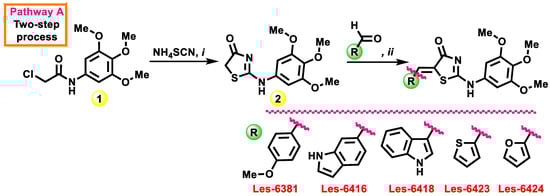 - Synthesis of 5-ene-2-((3,4,5-trimethoxyphenyl)amino)thiazol-4(5H)-ones Les-6381, Les-6416, Les-6418, Les-6423, and Les-6424