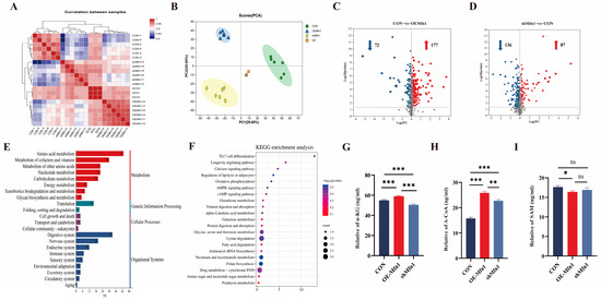 2.13. Determination of Enzyme-Linked Immunosorbent Assay (ELISA) for α-KG, A-CoA, and SAM Content