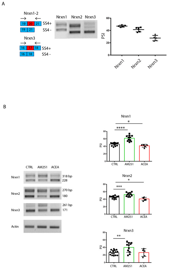 3.2. Expression of Nrxns Splice Variants Is Modulated by CB1 Receptors Signaling