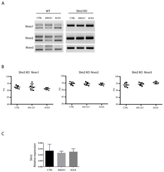 3.3. SLM2 Implication in Nrxns Splicing Pattern at SS4 Site