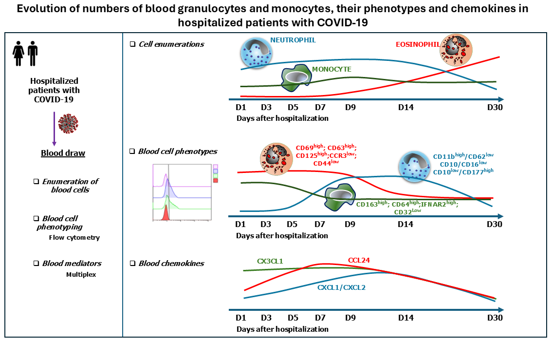 Dendooven, A.; Esnault, S.; Jacob, M.; Trauet, J.; Delaunay, E.; Guerrier, T.; Samarasinghe, A.E.; Mirgot, F.; Vuotto, F.; Faure, K.; et al. Evolution of Blood Innate Immune Cell Phenotypes Following SARS-CoV-2 Infection in Hospitalized Patients with COVID-19. Cells 2025, 14, 1093. https://doi.org/10.3390/cells14141093