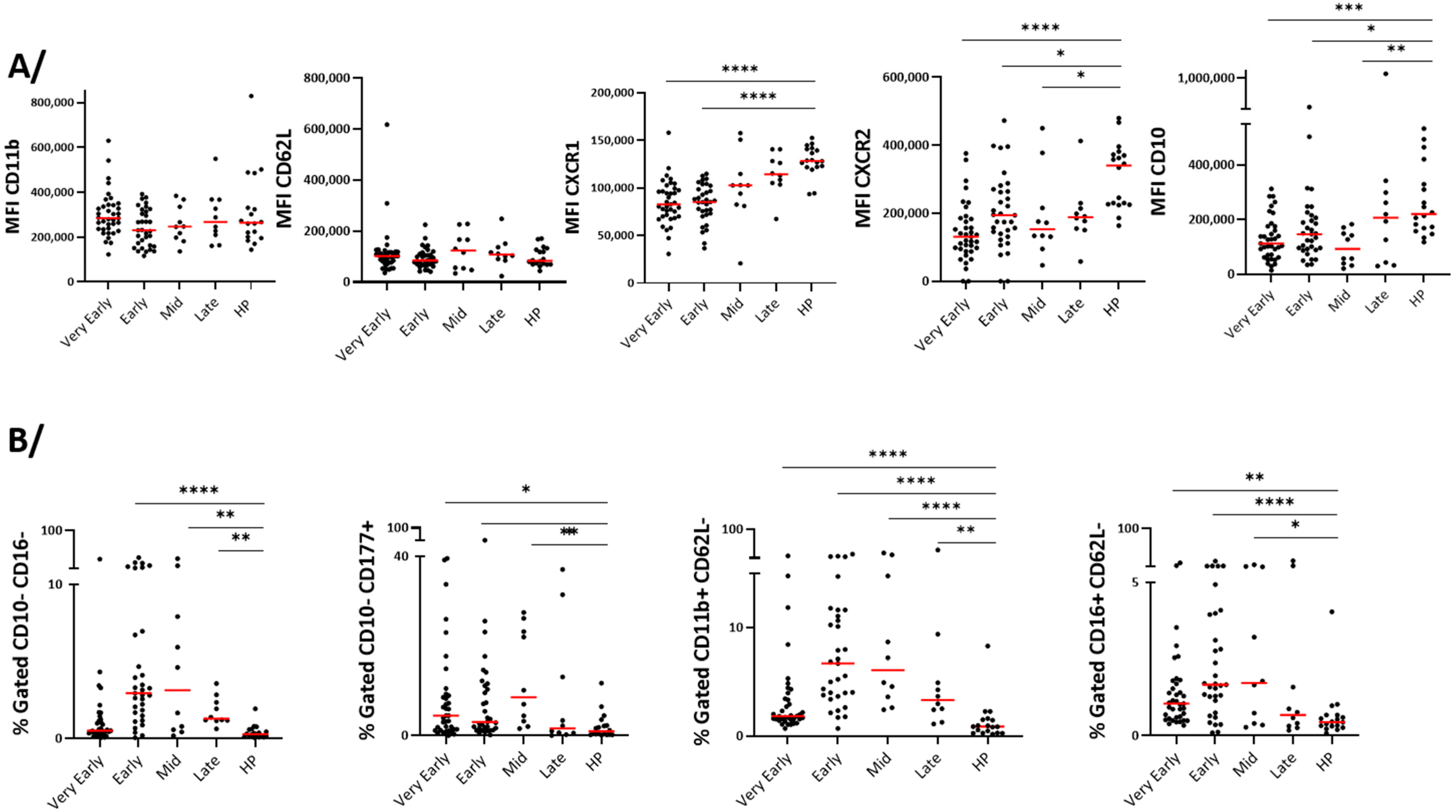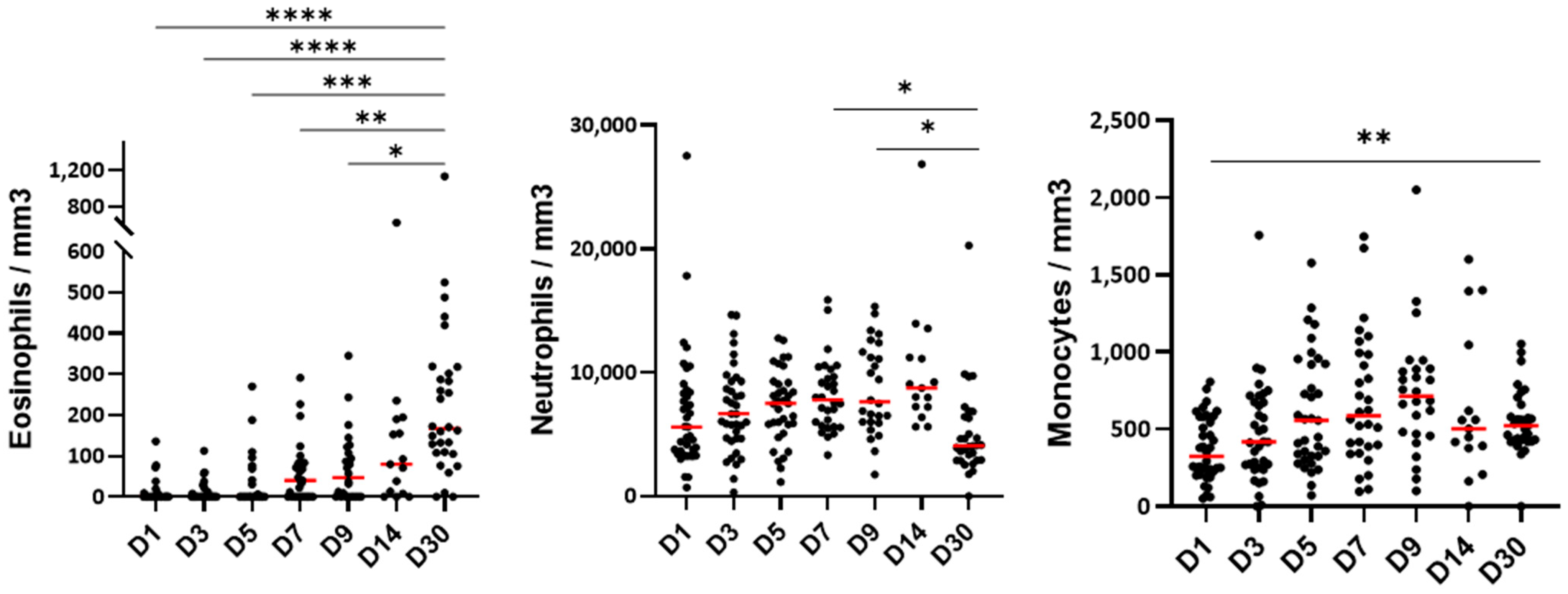 | Early phase (D5 to D9) | 27 (23 for antibody panel 2) | 33 | 35 | 28 |