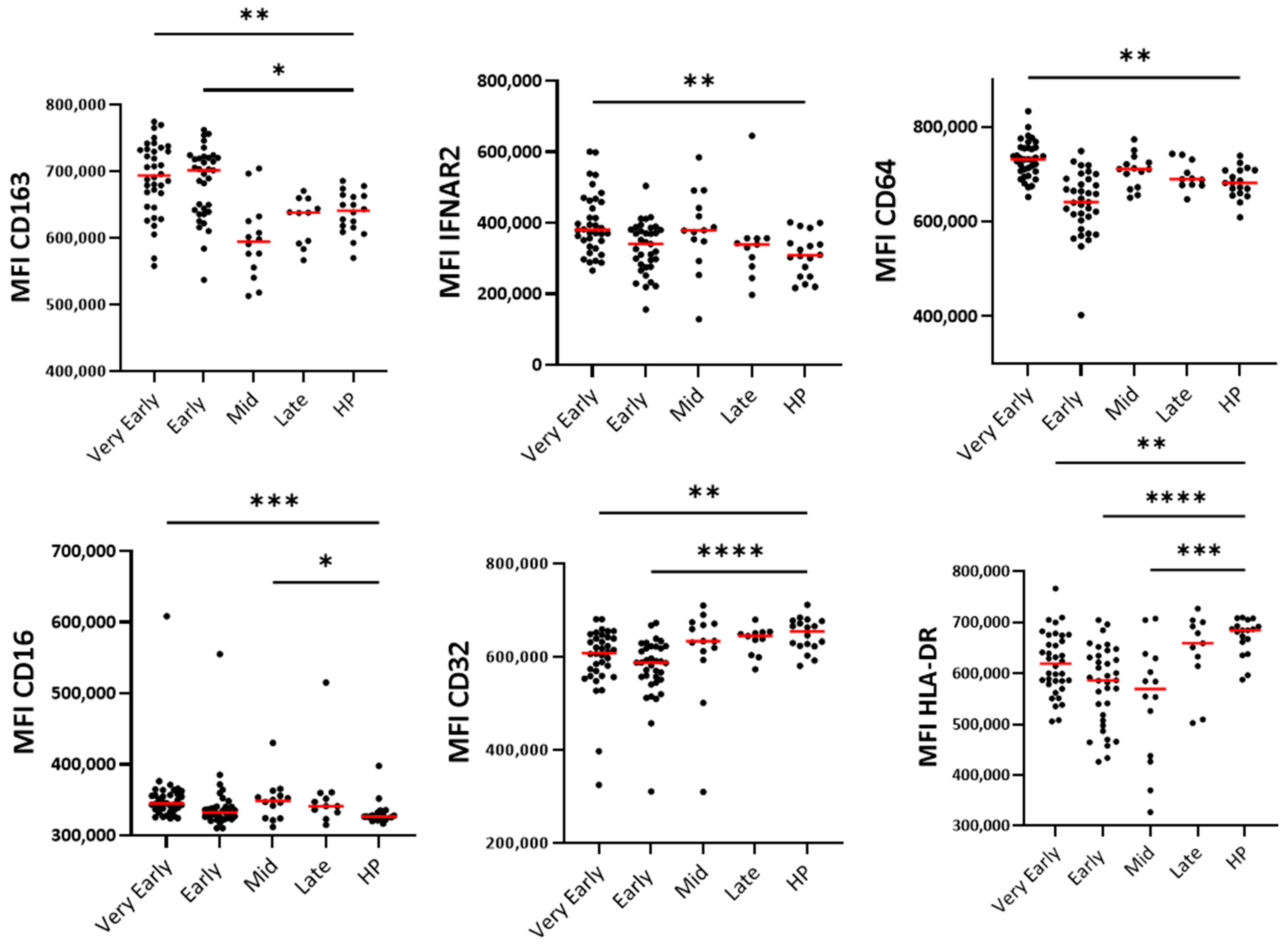 | Very early phase (D1 to D3) | 13 (10 for antibody panel 2) | 37 | 36 | 37 |
