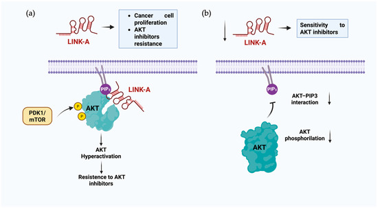 47. Lin, A.; Hu, Q.; Li, C.; Xing, Z.; Ma, G.; Wang, C.; Li, J.; Ye, Y.; Yao, J.; Liang, K.; et al. The LINK-A lncRNA interacts with PtdIns(3,4,5)P3 to hyperactivate AKT and confer resistance to AKT inhibitors. Nat. Cell Biol. 2017, 19, 238–251. [Google Scholar] [CrossRef]