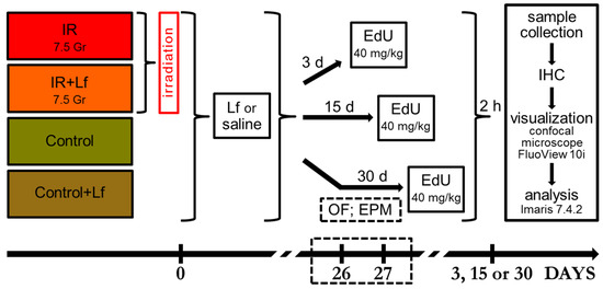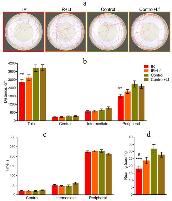3.3. Lf Prevented Changes in the Behavior of Irradiated Mice