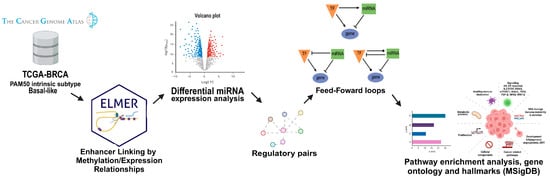 Okano LM, de Azevedo ALK, Carvalho TM, Resende J, Magno JM, Figueiredo BC, Malta TM, Castro MAA, Cavalli LR. Identification of Epigenetic Regulatory Networks of Gene Methylation–miRNA–Transcription Factor Feed-Forward Loops in Basal-like Breast Cancer. Cells. 2025; 14(16):1235. https://doi.org/10.3390/cells14161235