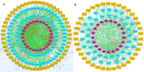 3.2. Epigenetic Gene–TF–miRNA Networks and Formed FFLs