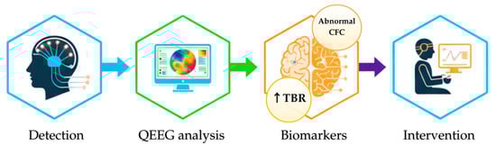 The combination of the excess Theta and deficit Beta phenomena led to the development of a specific index known as the Theta-to-Beta Ratio (TBR) [53,56]. An elevated TBR is one of the most frequently cited and extensively investigated neurophysiological candidates for a biomarker of ADHD.