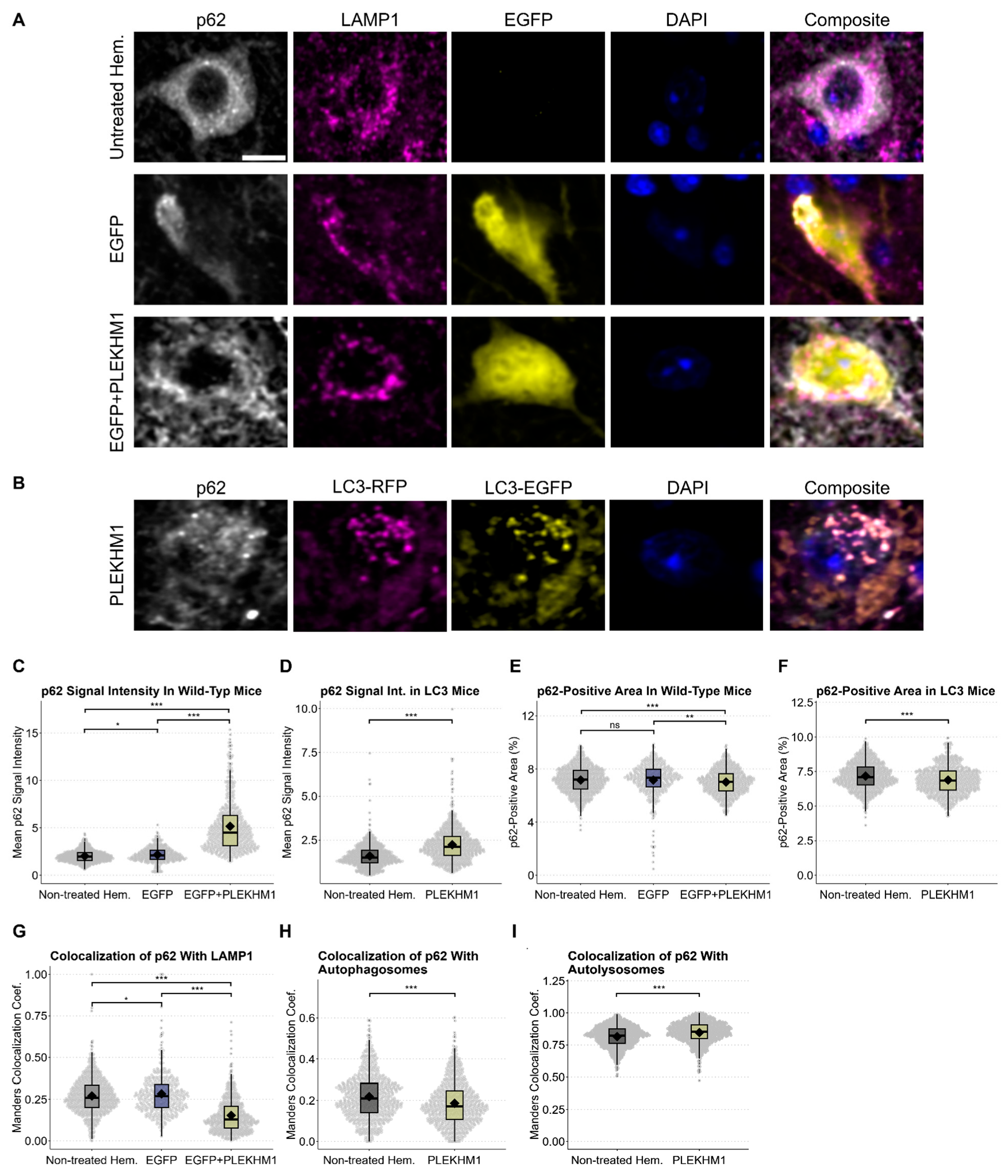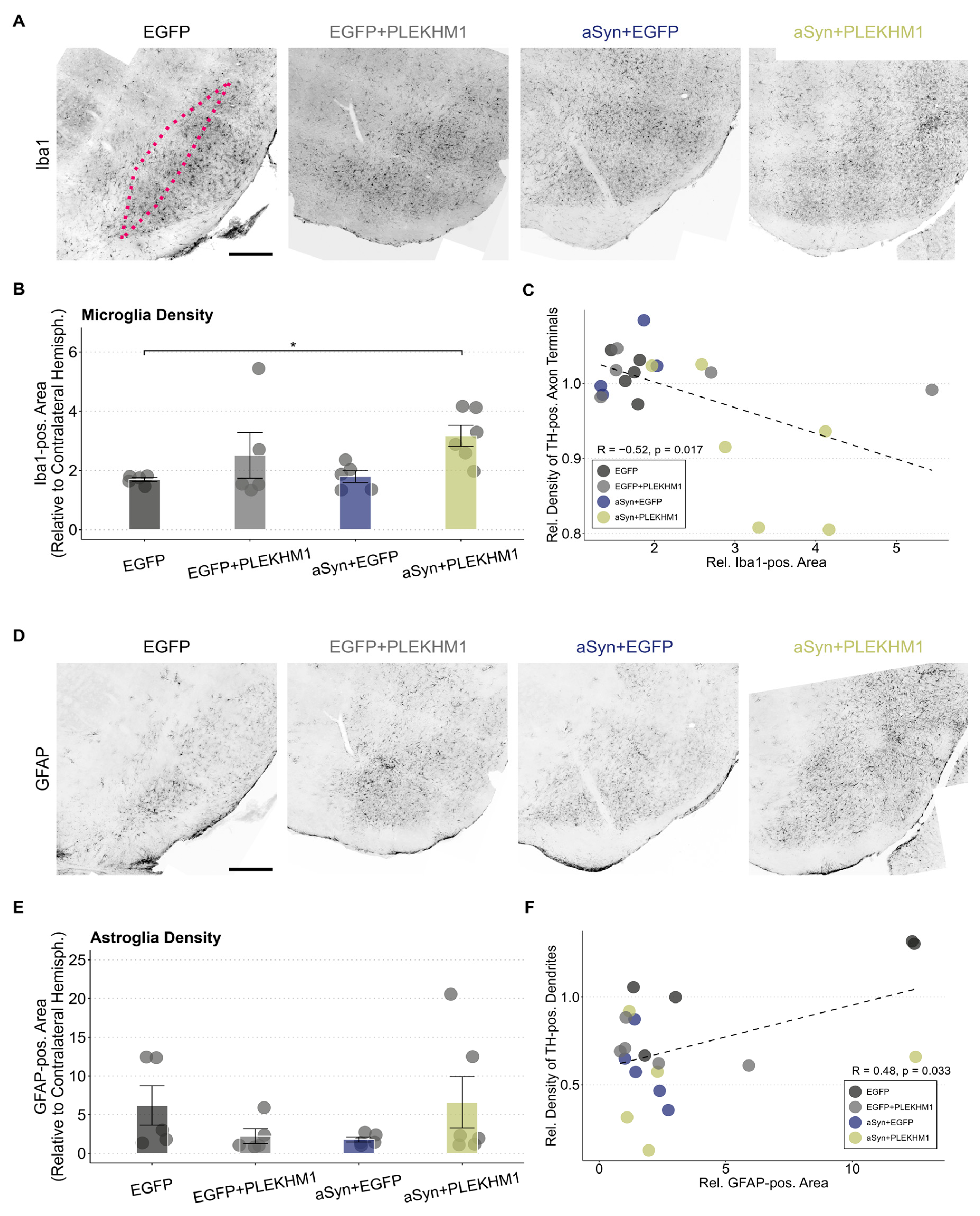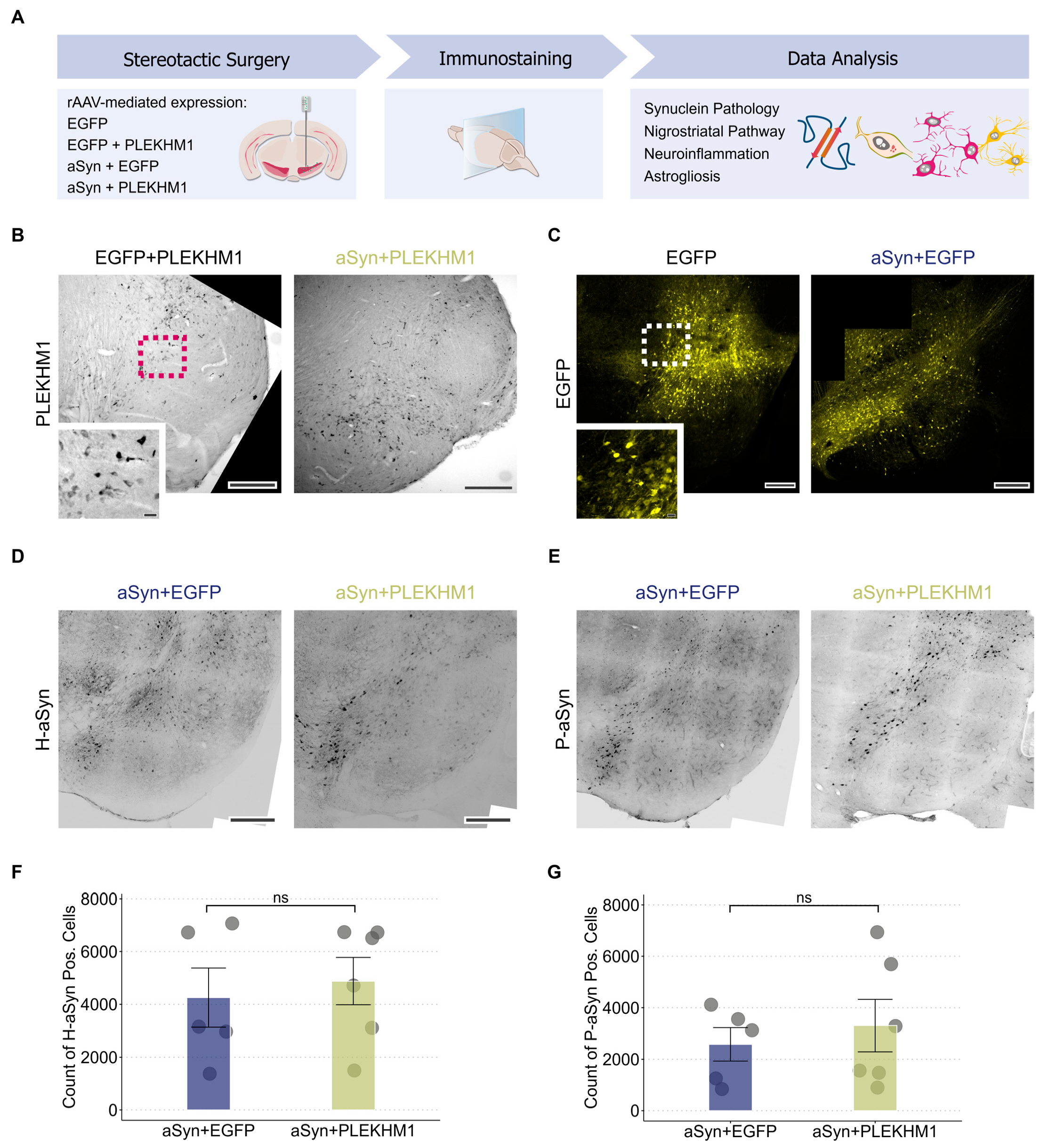 - PLEKHM1 overexpression worsens α-synuclein-induced neurodegeneration and inflammation;