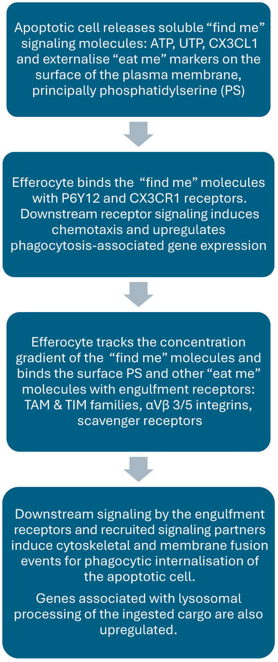 Programmed cell death and its consequences are not only determined by the mode of death, but also by the timing and efficiency of corpse removal, a process now known as efferocytosis (EF) [1]. Indeed, it has been proposed that apoptosis, the principal mode of homeostatic cell death, is not complete until efferocytosis has been successfully accomplished [2].
