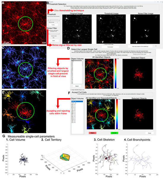 - Kim, J.; Pavlidis, P.; Ciernia, A.V. Development of a High-Throughput Pipeline to Characterize Microglia Morphological States at a Single-Cell Resolution. eNeuro 2024, 11, 1–16. [Google Scholar] [CrossRef] [PubMed]
