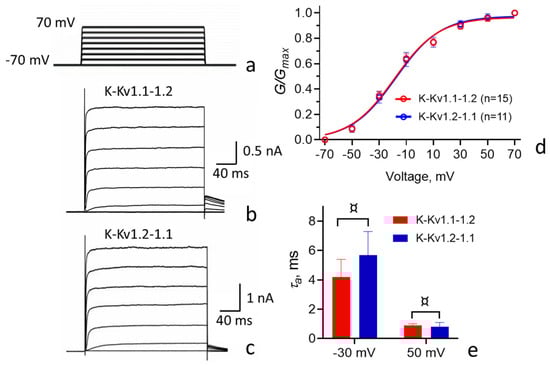 3.3. Properties of Heterochannels Formed by Concatemers K-Kv1.1-1.2 and K-Kv1.2-1.1