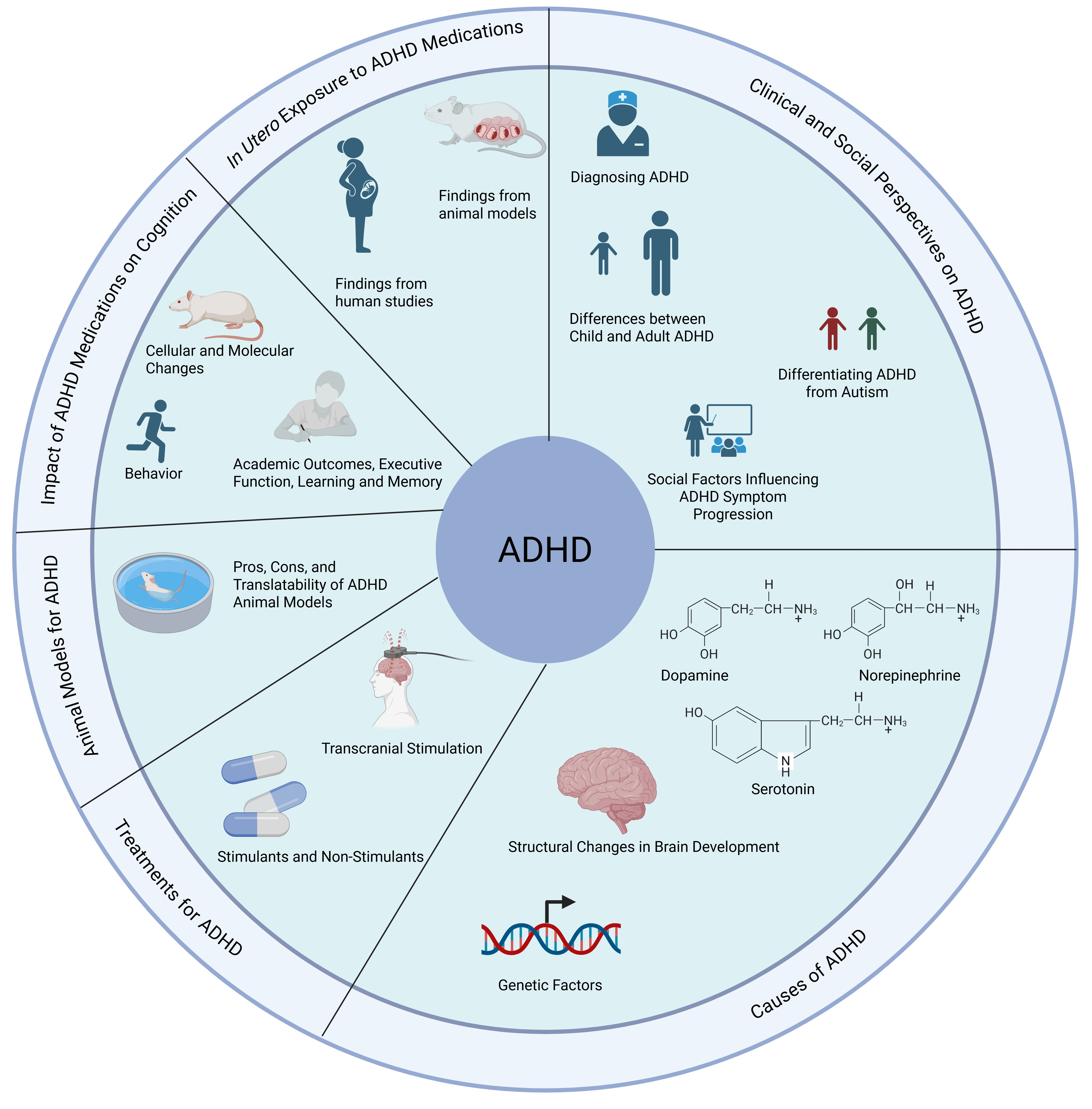 APA StyleYacoub, M. W., Smith, S. R., Abbas, B., Iqbal, F., Jazieh, C. M. O., Al Shaer, N. S. H., Luk, C. C.-F., & Syed, N. I. (2025). Attention-Deficit Hyperactivity Disorder (ADHD): A Comprehensive Overview of the Mechanistic Insights from Human Studies to Animal Models. Cells, 14(17), 1367. https://doi.org/10.3390/cells14171367